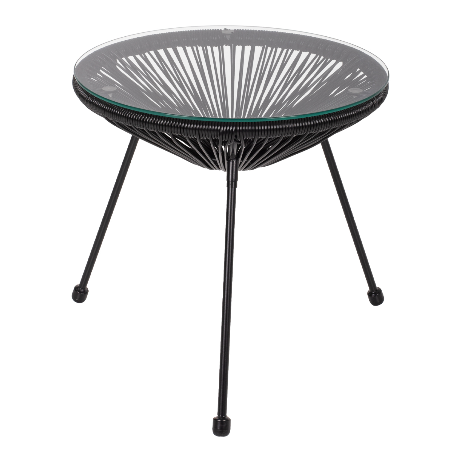 Το ALLEGRA είναι ένα χαμηλό στρογγυλό βοηθητικό τραπέζι, κυρίως για επαγγελματική χρήση. Στηρίζεται σε μια βάση με 3 μαύρα μεταλλικά πόδια. Το τραπέζι είναι κωνικό από συνθετικό Rattan επίσης σε μαύρο χρώμα, και η επιφάνειά του είναι γυαλί ασφαλείας. Ένα πανέμορφο τραπέζι, το οποίο αν συνδυαστεί και με καρέκλες της ίδιας σειράς θα αποτελέσει ένα καταπληκτικό μέρος στον χώρο σας.