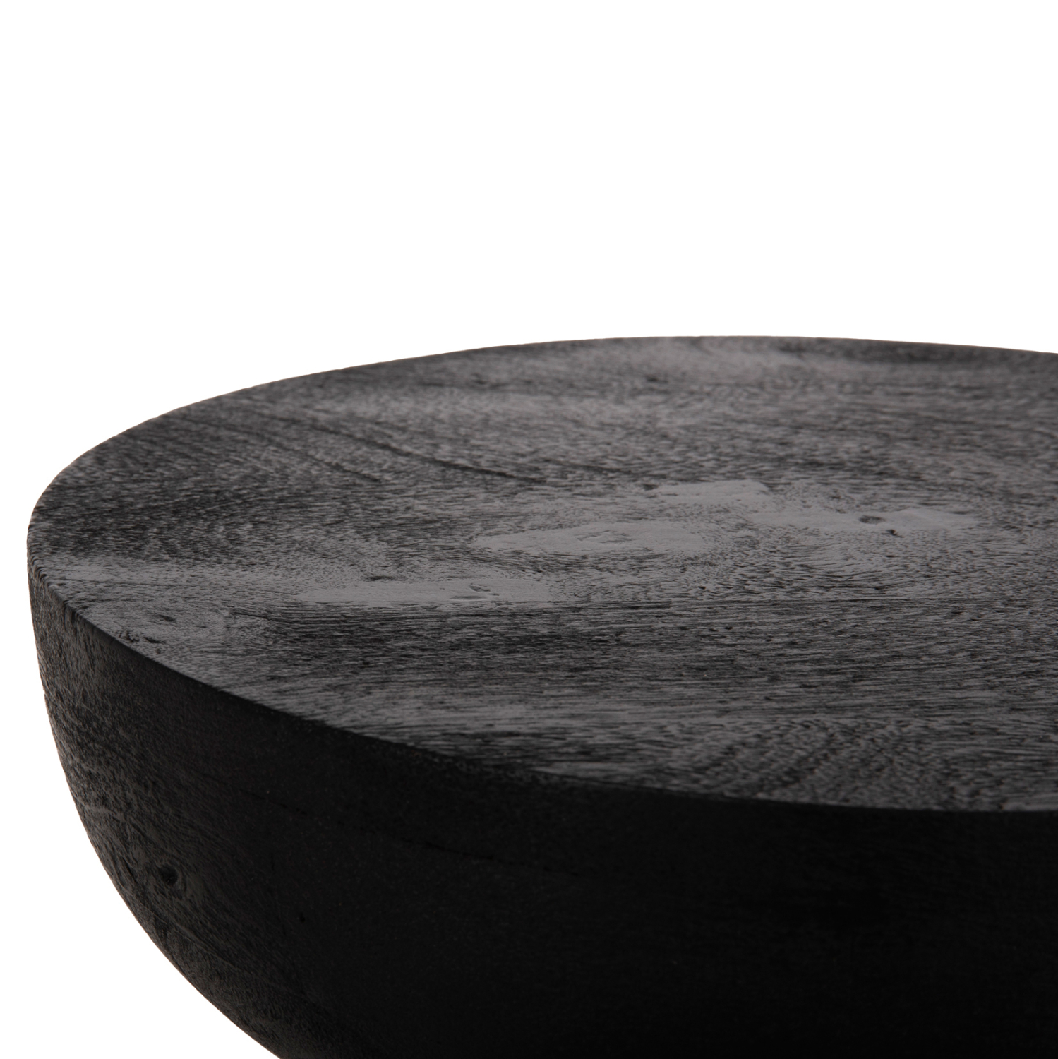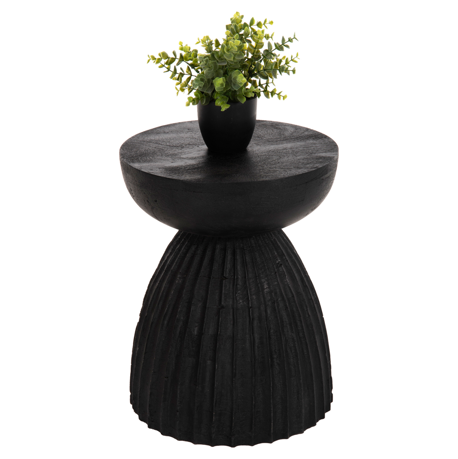 Το σκαμπό σαλονιού SCALLOP που είναι εξολοκλήρου κατασκευασμένο από μασίφ ξύλο mango σε ΜΑΥΡΟ χρώμα μπορεί να χρησιμοποιηθεί και ως βοηθητικό τραπεζάκι, χάρη στο κωνικό σχήμα της βάσης που καταλήγει στην στρογγυλή επιφάνεια. Ένα σκαμπό που θα εντυπωσιάσει με τις πτυχώσεις της βάσης και το χρώμα του, αφού είναι sand blasted, προσδίδοντας εικόνα παλαιότητας στο έπιπλο.