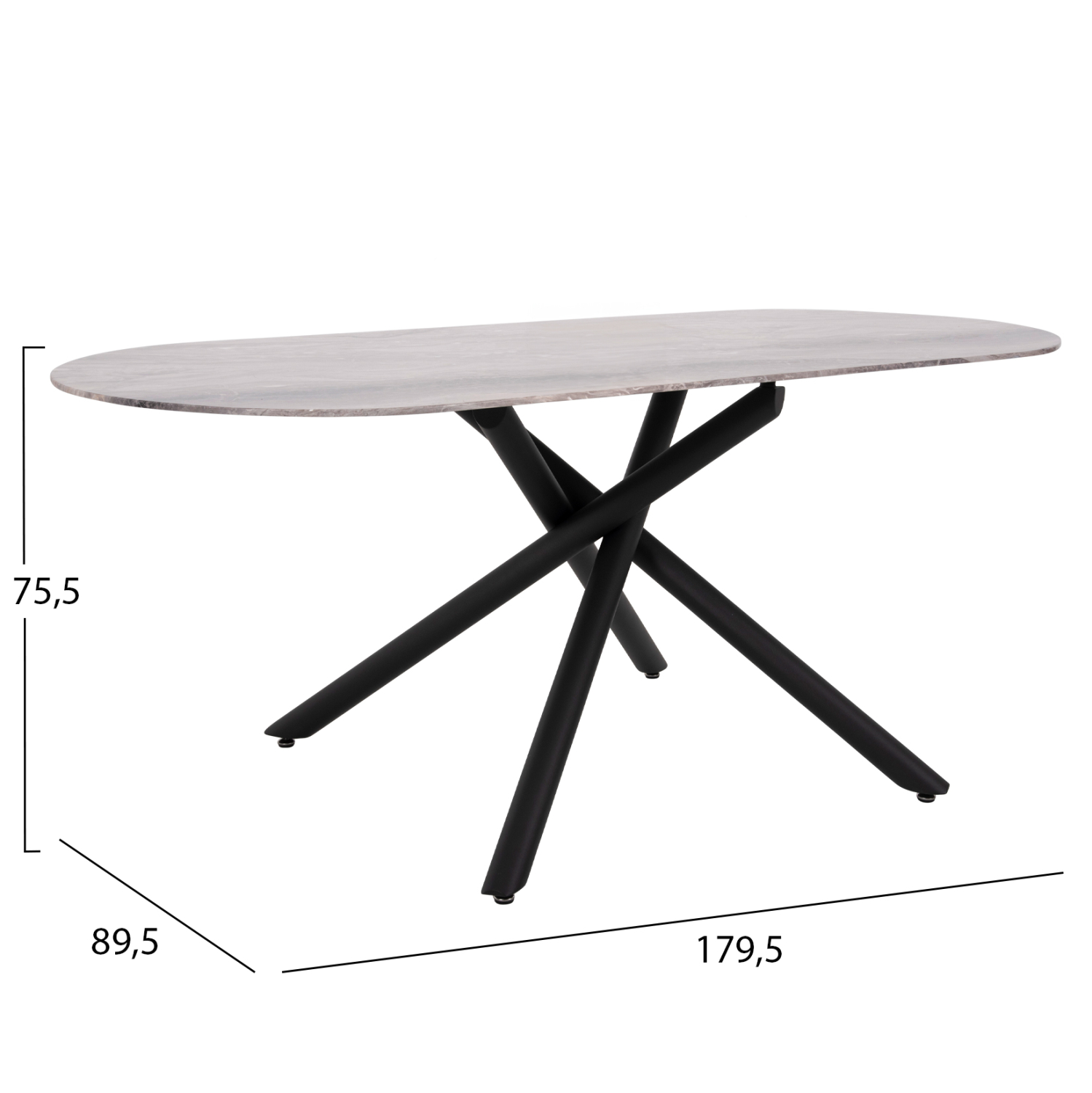 ΤΡΑΠΕΖΙ ΤΡΑΠΕΖΑΡΙΑΣ PRENTIS HM9770.02 12mmΚΕΡΑΜΙΚΟ ΜΑΥΡΟ ΜΑΡΜΑΡΟ-ΜΑΥΡΟ ΜΕΤΑΛΛΟ 180x90x76Υ εκ.